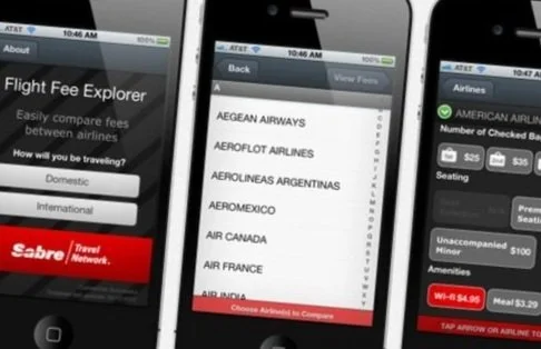 Mobile App (Gen 4-6 iPhone): Designed for Sabre Travel Network, this app helps travel agents and travelers compare airline ancillary fees, providing a clear, intuitive way to assess costs across carriers.